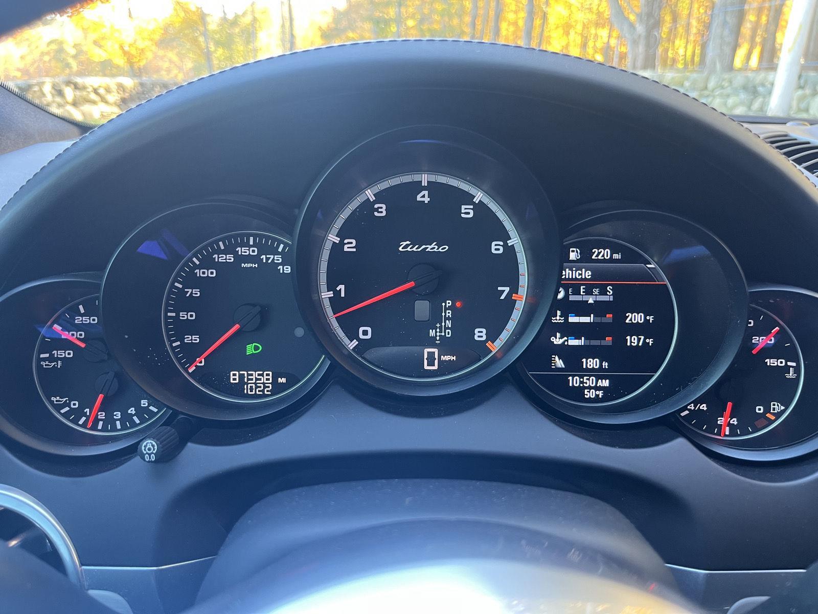 Beautiful 2017 Porsche Cayenne Turbo with 87,085 miles. Finished in Meteor Grey Metallic on Black.