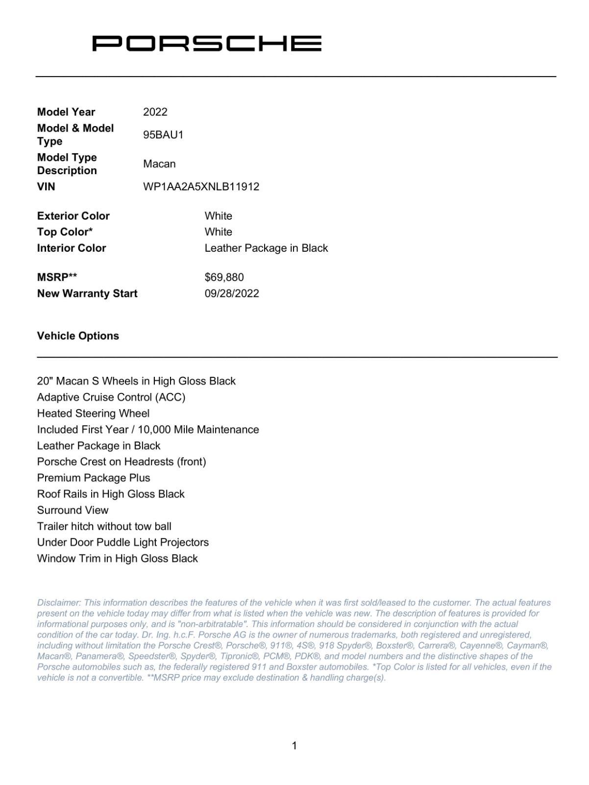 Beautiful 2022 Porsche Macan Base with 26,682 miles. Finished in White on Black.