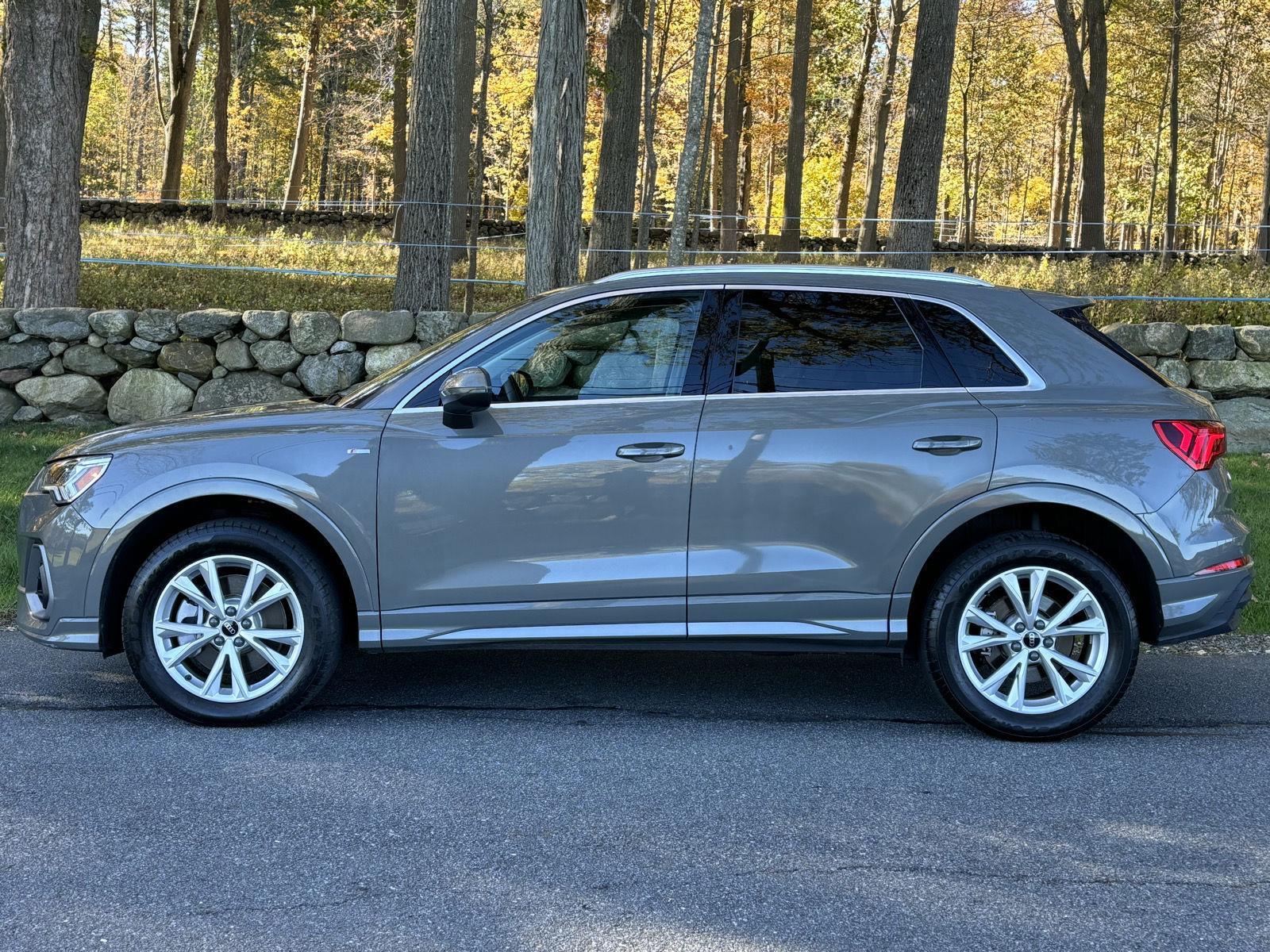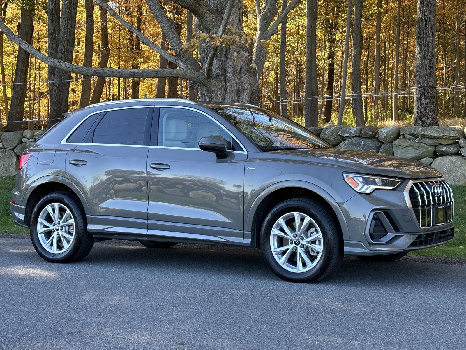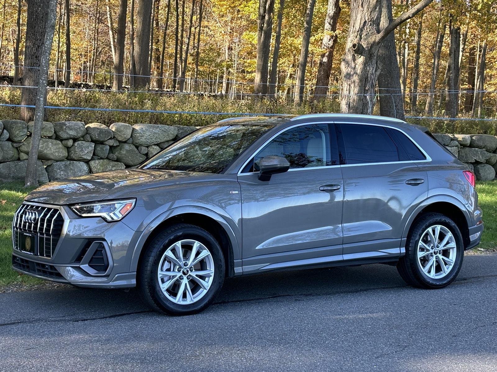 Beautiful 2023 Audi Q3 S line Premium with 17,354 miles. Finished in Chronos Gray Metallic on Pearl Beige.