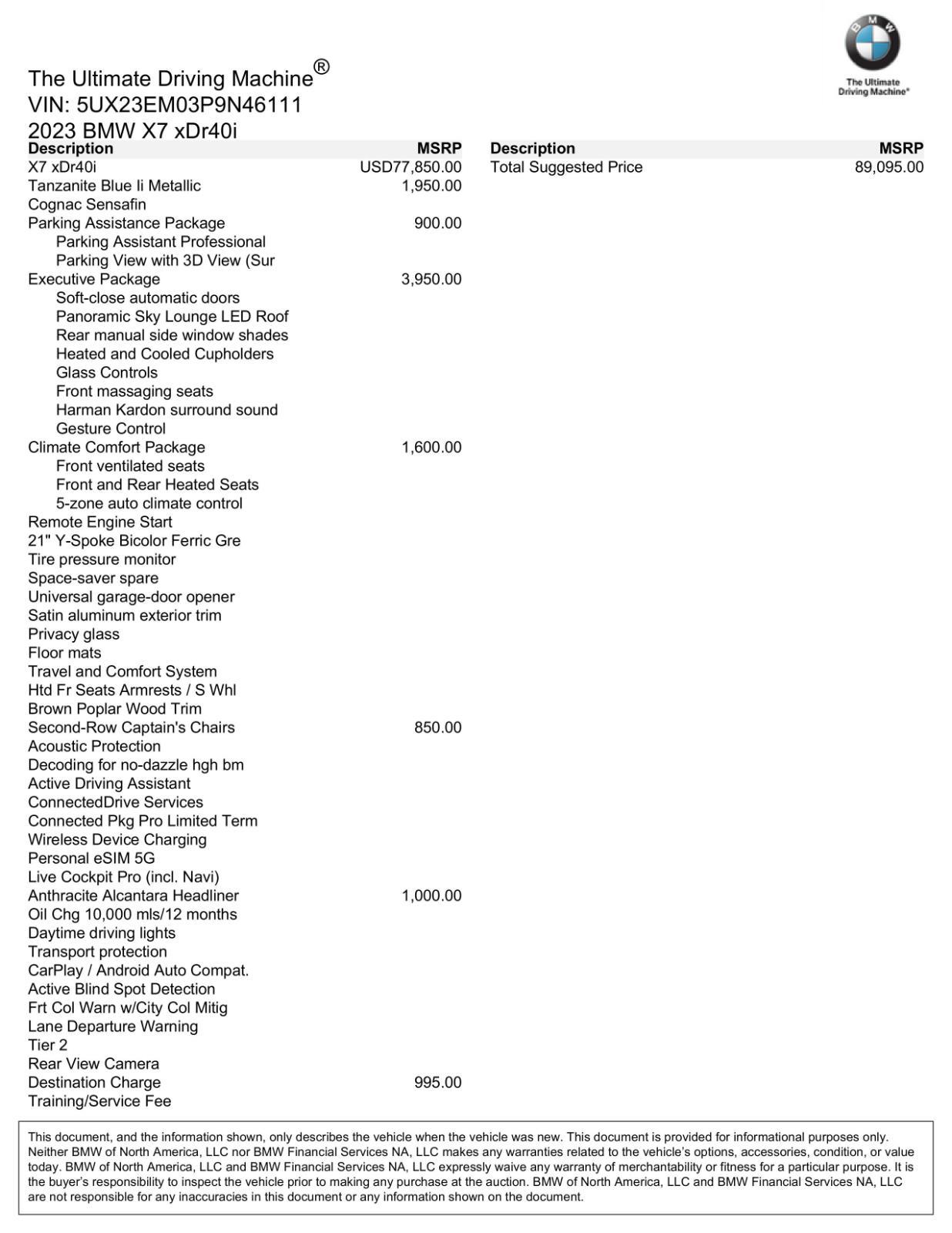 Beautiful 2023 BMW X7 xDrive40i with 13,192 miles. Finished in Tanzanite Blue II Metallic on Cognac.